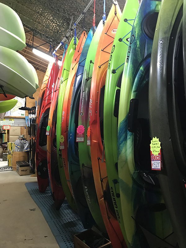 On the surface, they are an Army Navy Surplus store, but they are also the largest kayak dealer in New England and have a vast selection of fishing and non-fishing kayaks available, from Jackson Kayak, Native Watercraft, Old Town, Nucanoe, Wilderness Systems, FeelFree, and many more. They also offer a wide variety of accessories—paddles, racks, mounts, etc.